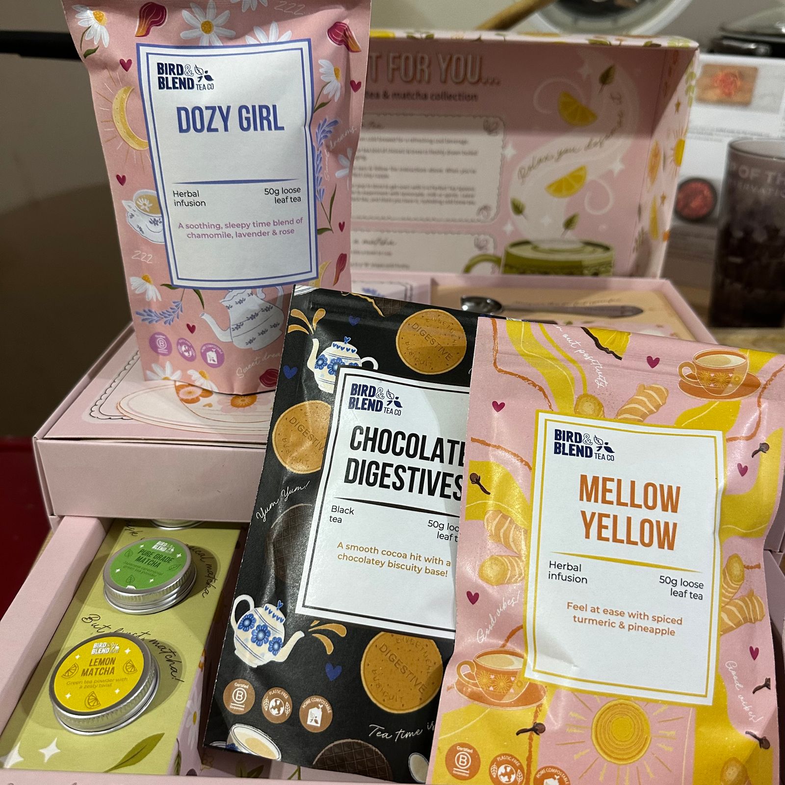 These products are only available as unique items in Tea Time is Me Time Box, including the custom packaging for tea and tea sacs.
